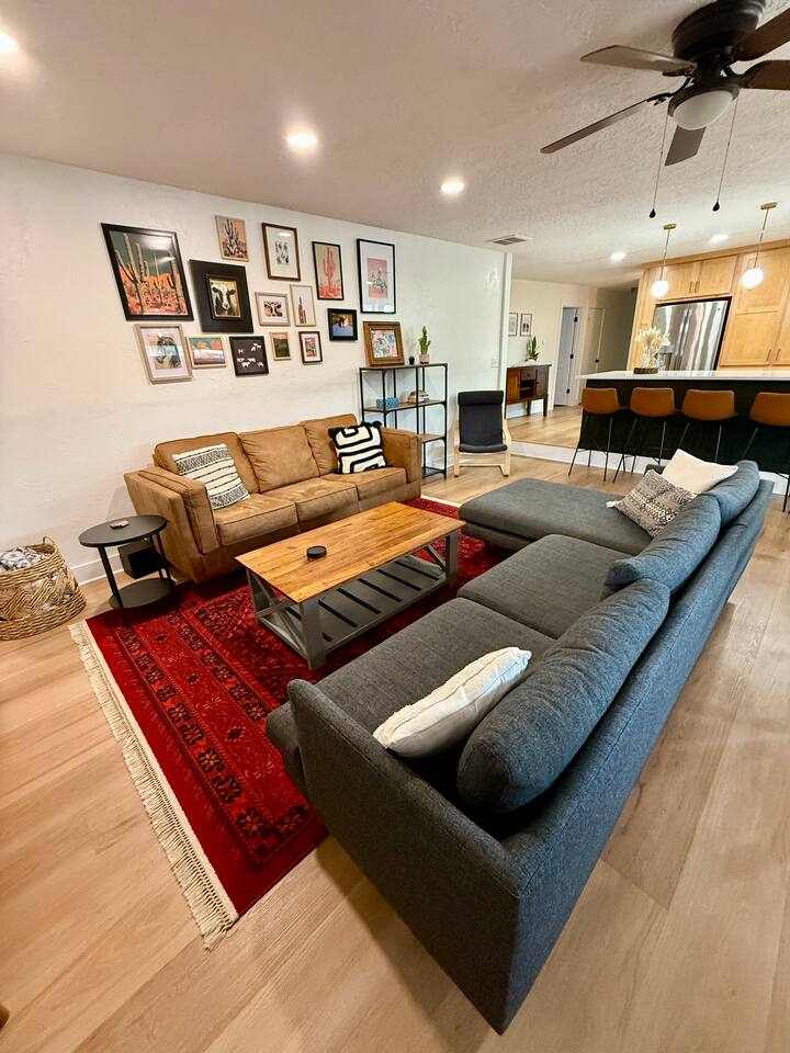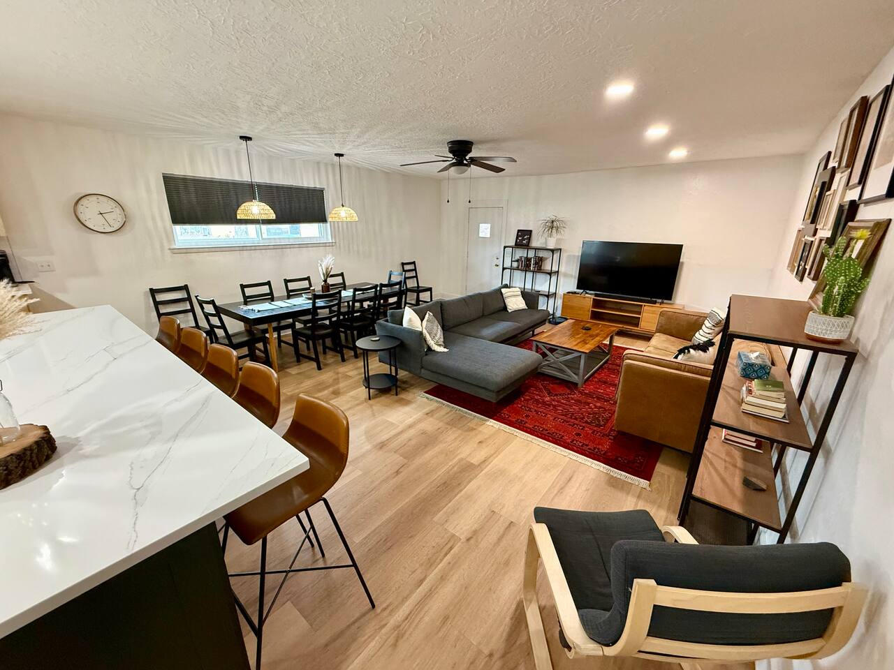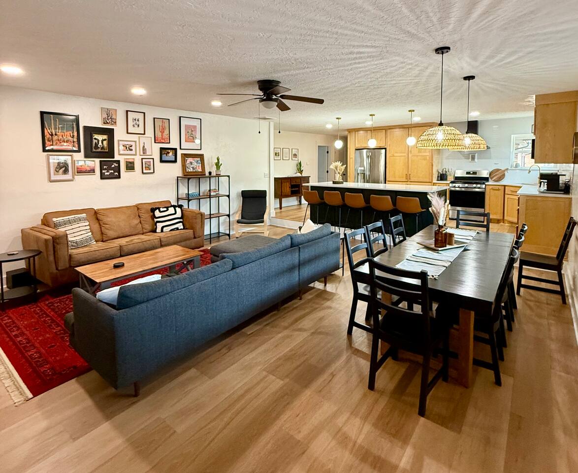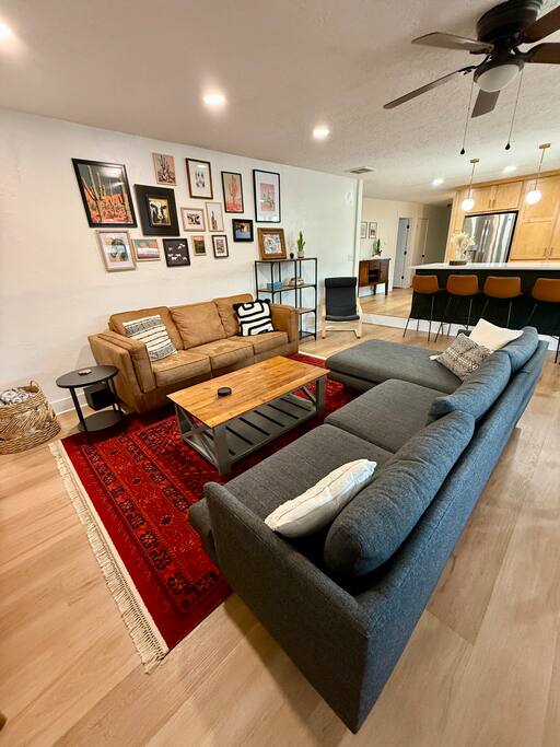 Your group with feel right at home our spacious Mid-West Mod. It offers a great mix of open area in the living/dining/kitchen, allowing you to all enjoy your time together, and the bedrooms offer privacy you want. With 5 separate bedrooms, 2 living areas and a fully stocked kitchen and laundry room, you get the most complete relaxing experience with your family or friends and access to all the essentials you need in a home.